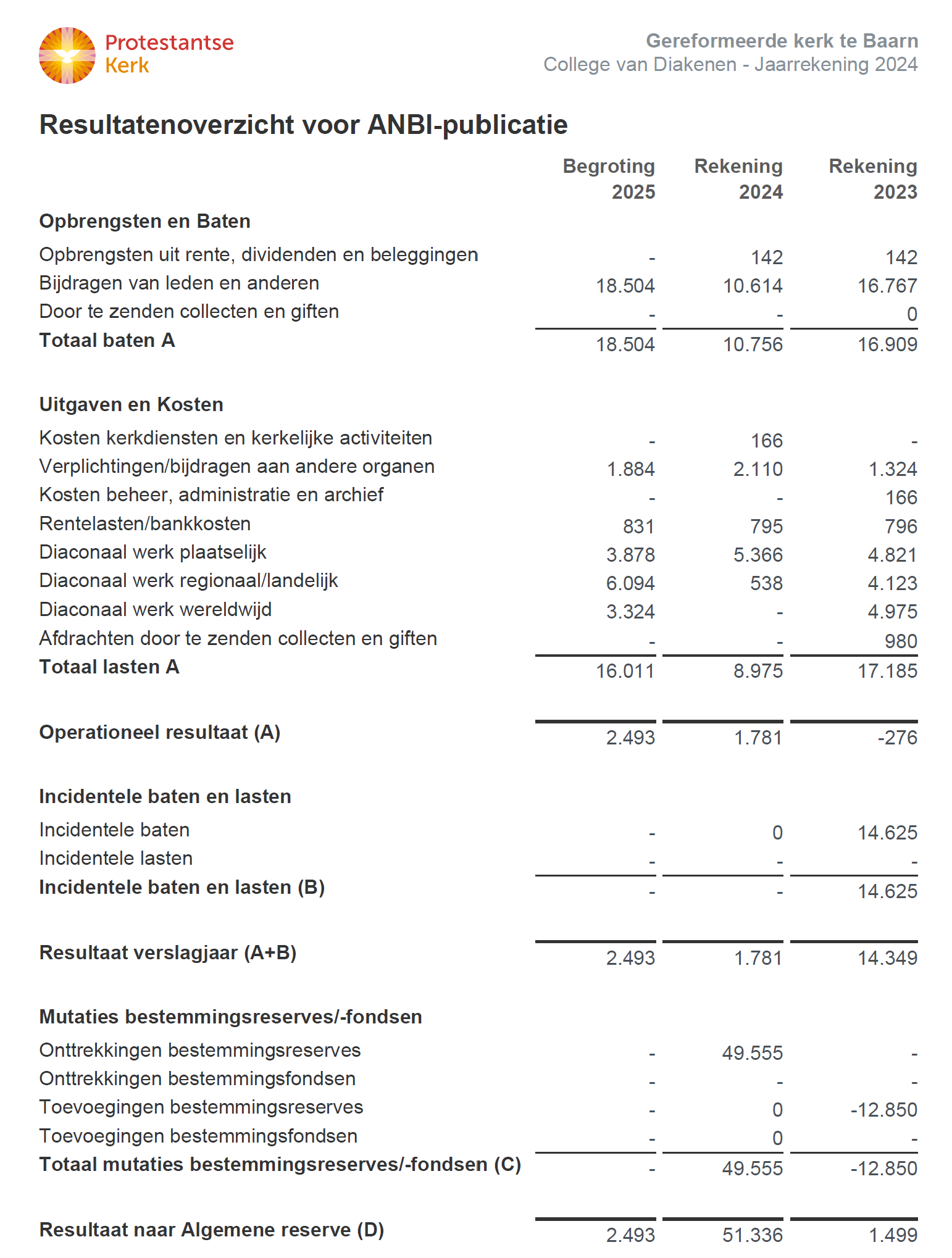 I. Algemene gegevens Diaconie Paaskerk Baarn